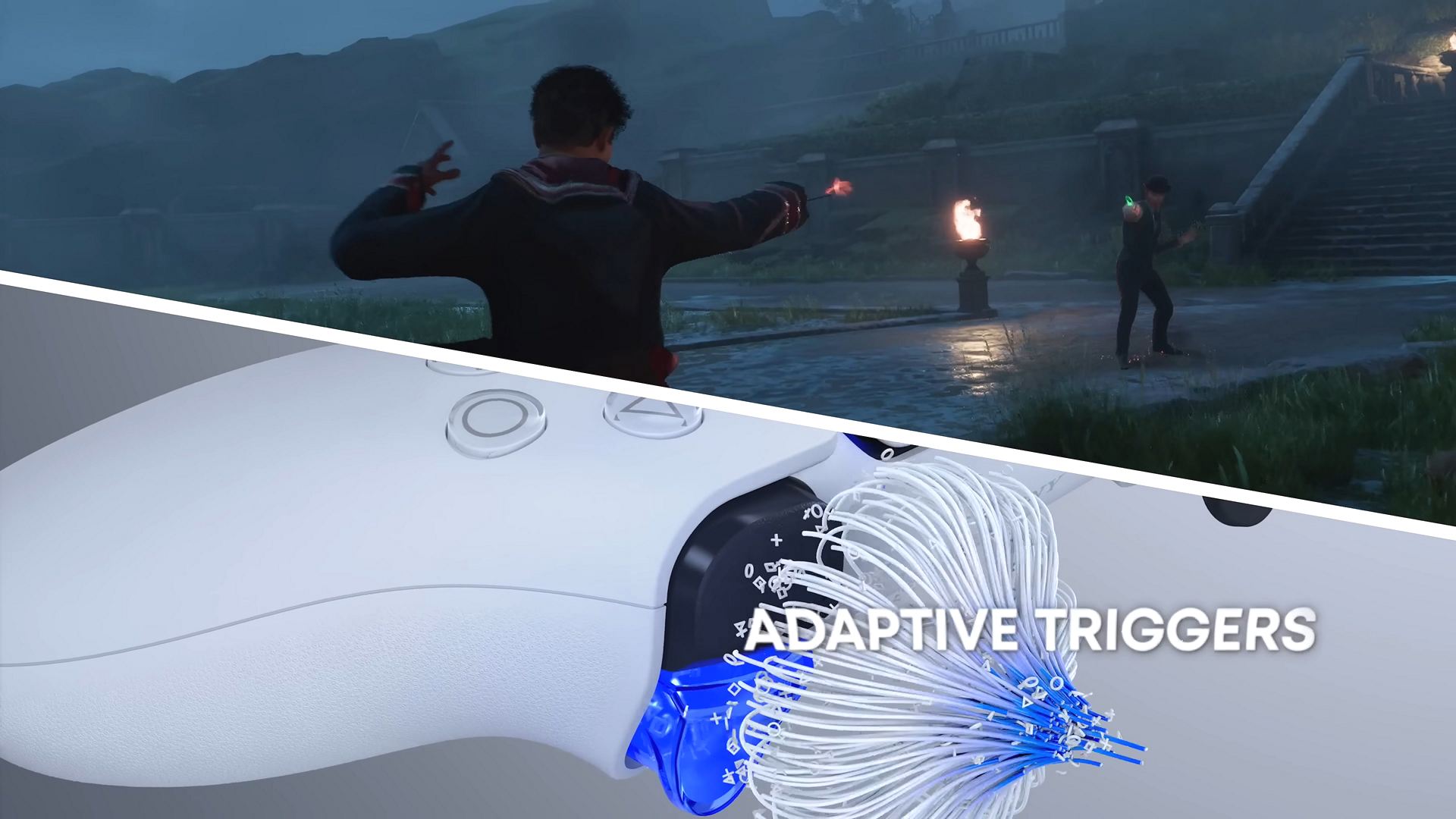 - 기본적인 주문을 발사하든, 더 강력한 마법을 위해 힘을 소환하든, 모든 주문을 통해 마법의 저항을 느낄 수 있습니다. 또한 듀얼센스와 지팡이를 직접 연결하는 햅틱 피드백 덕분에 주문이 독특하게 느껴집니다. 듀얼센스가 게임에서 사용하는 지팡이의 연장선이 되도록 컨트롤러의 오른쪽에 이러한 효과를 특별히 분리했고, 방패 마법 '프로테고'로 주문을 맞으면 주문이 반사되어 흡수되는 느낌을 받을 수 있습니다.