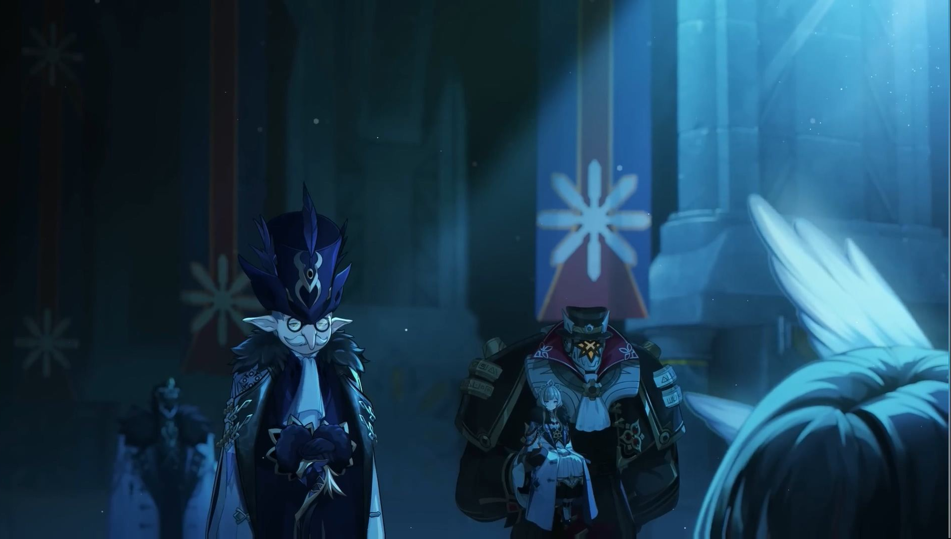 - 우인단 도화(道化), 페드롤리노(피에로) - "한밤중의 광대극은 그만. 지금은, 관중이 없다네. 모든 숭고한 희생은 얼음 위에 새겨져 스네즈나야와 함께하리라. 고결한 얼음 여왕 아래, 우리는 필시 신들의 권능을 차지할지니"