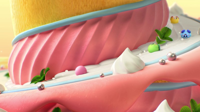 이번 작품은 커비 시리즈 최신작으로, 최대 4명의 플레이어들이 대전하는 미식 배틀 액션 게임인데요. 스테이지에 펼쳐진 딸기를 먹어 가장 커진 커비가 우승하는 시스템이며 아이스크림, 햄버거, 케이크 등의 다양한 스테이지가 존재, 커비의 「카피 푸드」 능력으로 디저트를 흡수해 다양한 능력도 사용할 수 있습니다.