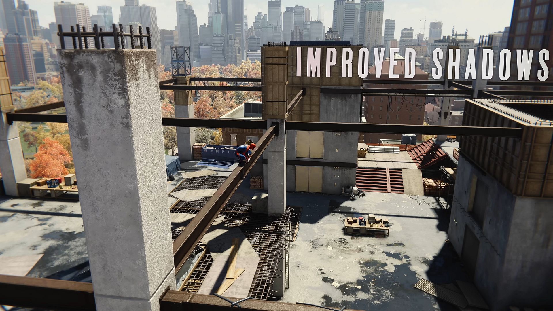 - 레이트레이싱 반사 및 그림자 지원 - 대응 하드웨어를 가지고 계신 분이라면 레이트레이싱에 의한 반사를 게임 전체에서 이용할 수 있다. 반사에는 다양한 퀄리티 레벨이 있으며, 그 중 하나인 새로운 고퀄리티 레이트레이싱 모드에서는 웹 스윙하거나 범죄에 맞서는 장면으로 마블 세계 뉴욕을 더욱 세밀하게 표현한다.