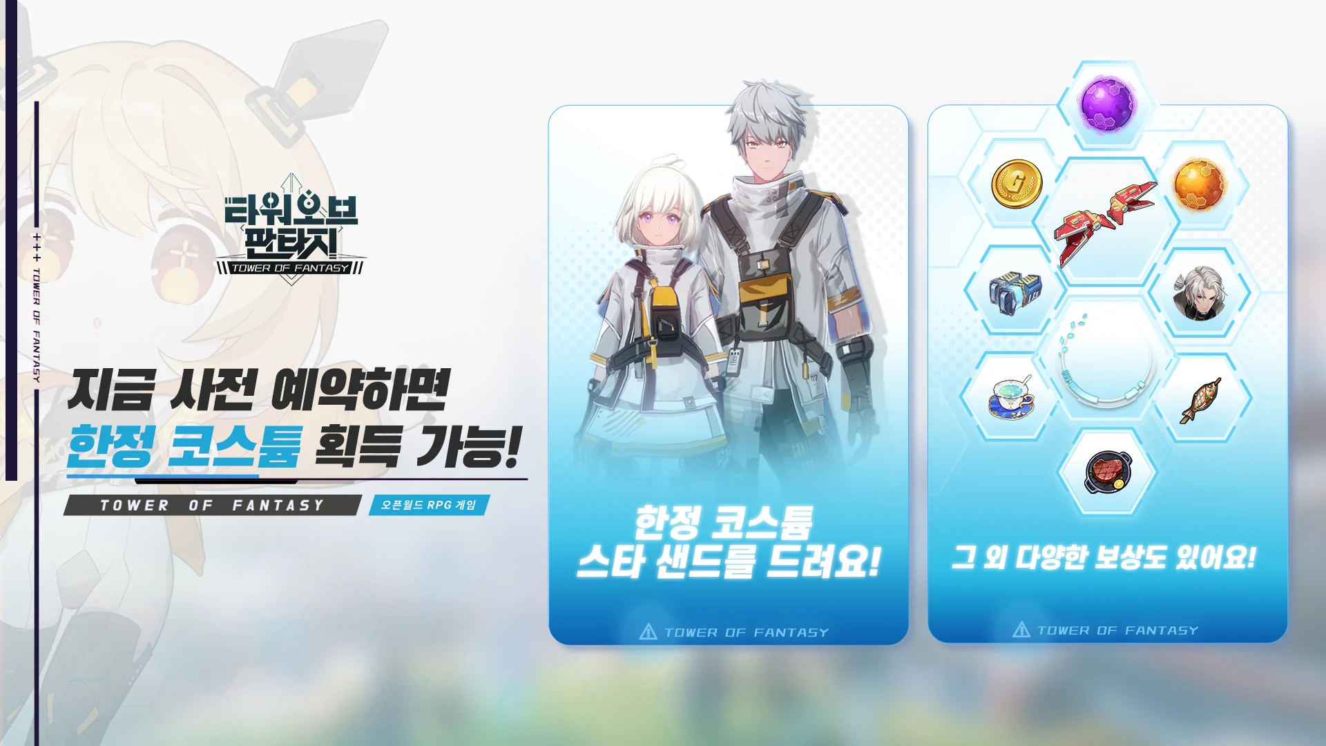 오픈월드 액션 RPG 게임 < 타워 오브 판타지 >가 2022년 8월 11일 오전 9시 PC, 모바일(iOS, Android)로 정식 출시될 예정이며, 현재 여러 아이템을 받을 수 있는 사전 예약도 진행 중, 예약 인원수도 50만 명을 돌파했다고 합니다.