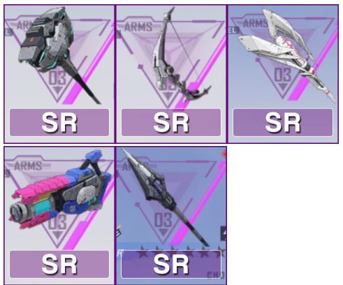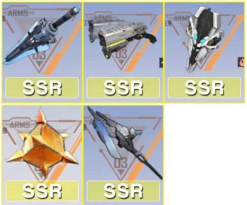 등급에 따른 다양한 무기들이 존재하며 당연한 말이지만 SSR 무기가 가장 강력하다