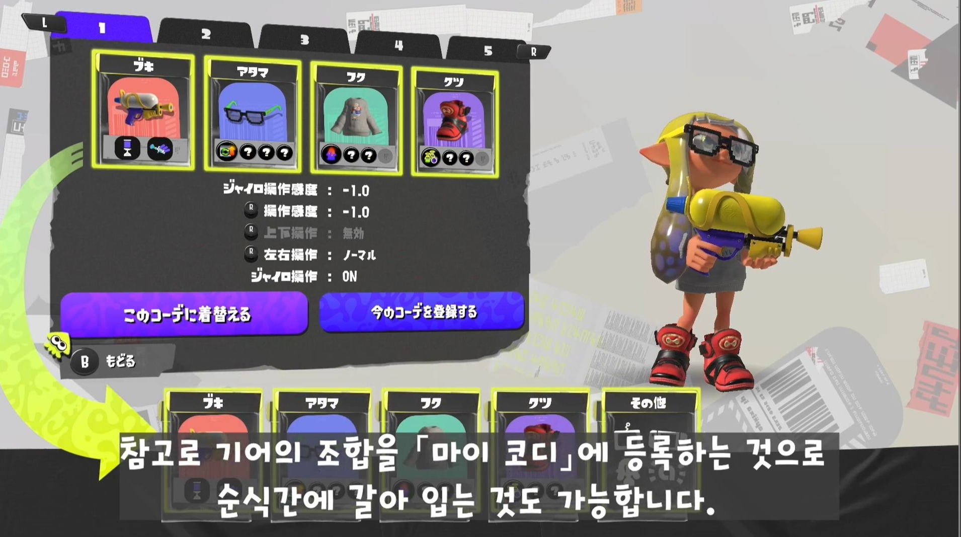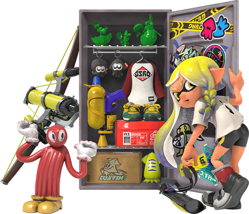 - 외형을 꾸밀 수 있는 「기어」 - 장비할 수 있는 기어는 「액세서리」, 「옷」, 「신발」 총 3가지로, 모자와 티셔츠, 운동화 등의 아이템으로 자유롭게 캐릭터 모습을 꾸밀 수 있다. 각각 배틀을 돕는 특별한 능력도 붙어 있기 때문에, 외형도, 능력도 나만의 코디가 가능하다.