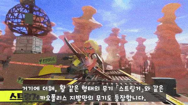 - 신무기, 스트링거 - 활 형태의 무기로 다수의 잉크를 동시에 발사한다.