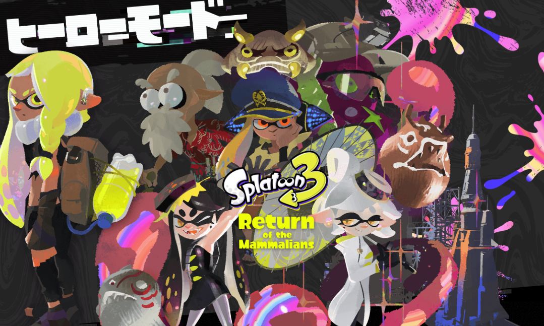 - Return of the Mammalians - '히어로 모드'는 많은 스테이지를 혼자서 플레이하고 공략해 나가는 오프라인 모드. 배틀, 무기의 기본을 배우기에 적합한 모드로서, 다양한 기믹이 기다리는 스테이지를 파트너 꼬마 연어와 함께 돌진한다.