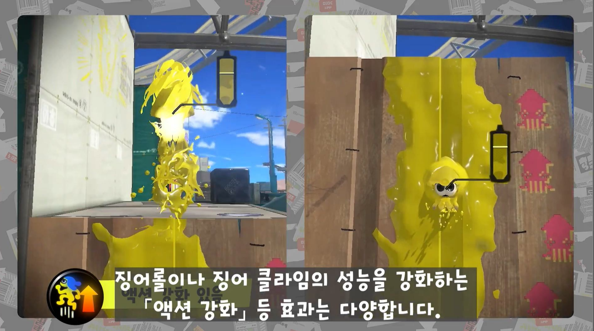 - 스플래쉬 봄 - 잉크의 벽을 설치하고 일정 시간 상대의 침입이나 공격을 방어하는 장치.