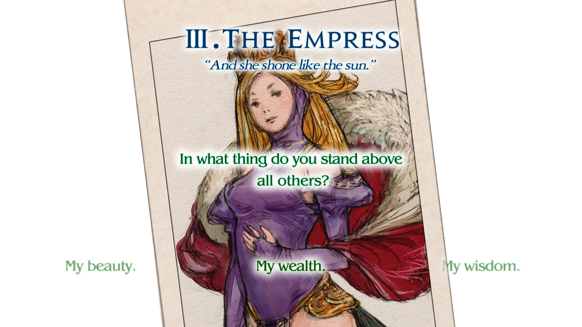 - 원래는 점에 사용되지만 오우거 배틀 시리즈와는 밀접한 관계가 있는 타로카드. 본 작품에서도 타로카드가 중요한 역할을 하는데 그중 하나가 캐릭터 생성이다. 캐릭터 제작에서는 주인공 데님의 생년월일 외에 타로카드인 '대아르카나(大アルカナ)'라고 불리는 22장의 카드 중에서 몇 개의 카드가 등장해 질문을 던진다. 이 질문의 대한 답변에 따라 데님의 초기 스탯(능력치)이 결정된다.