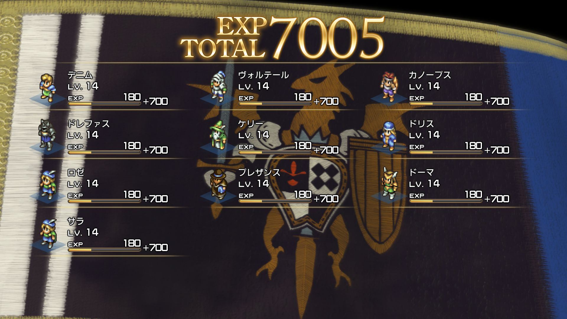 - 본 작품에서 주인공 데님은 자신의 기사단을 이끌게 된다. 그 기사단에 소속되어 데님과 함께 싸우는 동료들을 「유닛」이라고 부른다. 유닛에게는 다양한 「클래스」가 붙어 있고 각기 다른 능력을 가지고 있다. 주로 배틀에서 적을 쓰러뜨리고 승리하거나, 상점에서 장비품을 구입하고 마법을 배우면서 육성, 강화해 나갈 수 있게 된다. 또한 클래스별로 레벨업 시 상승하는 스탯(능력치)가 다르다.