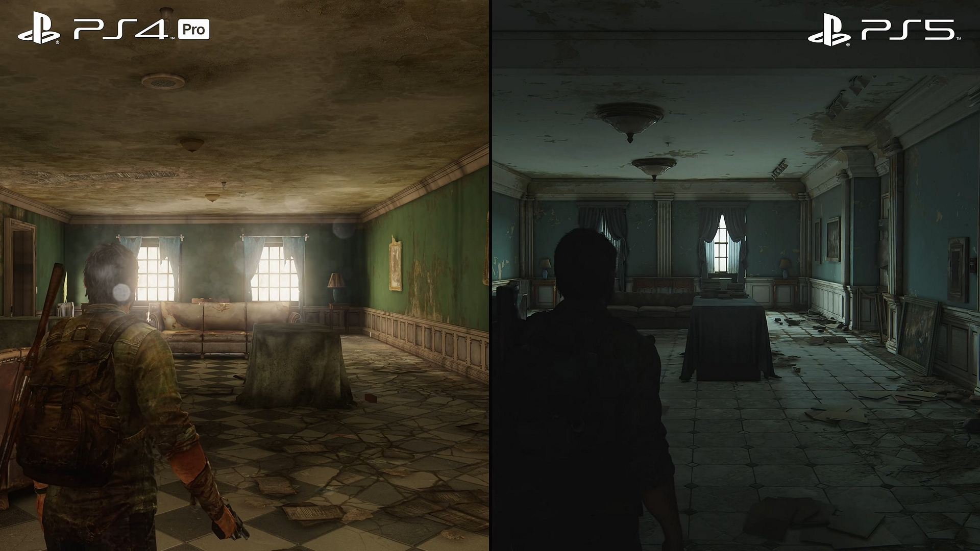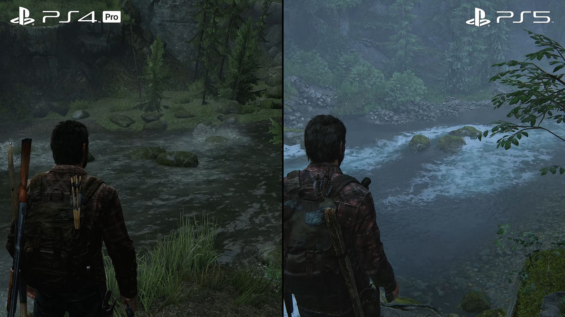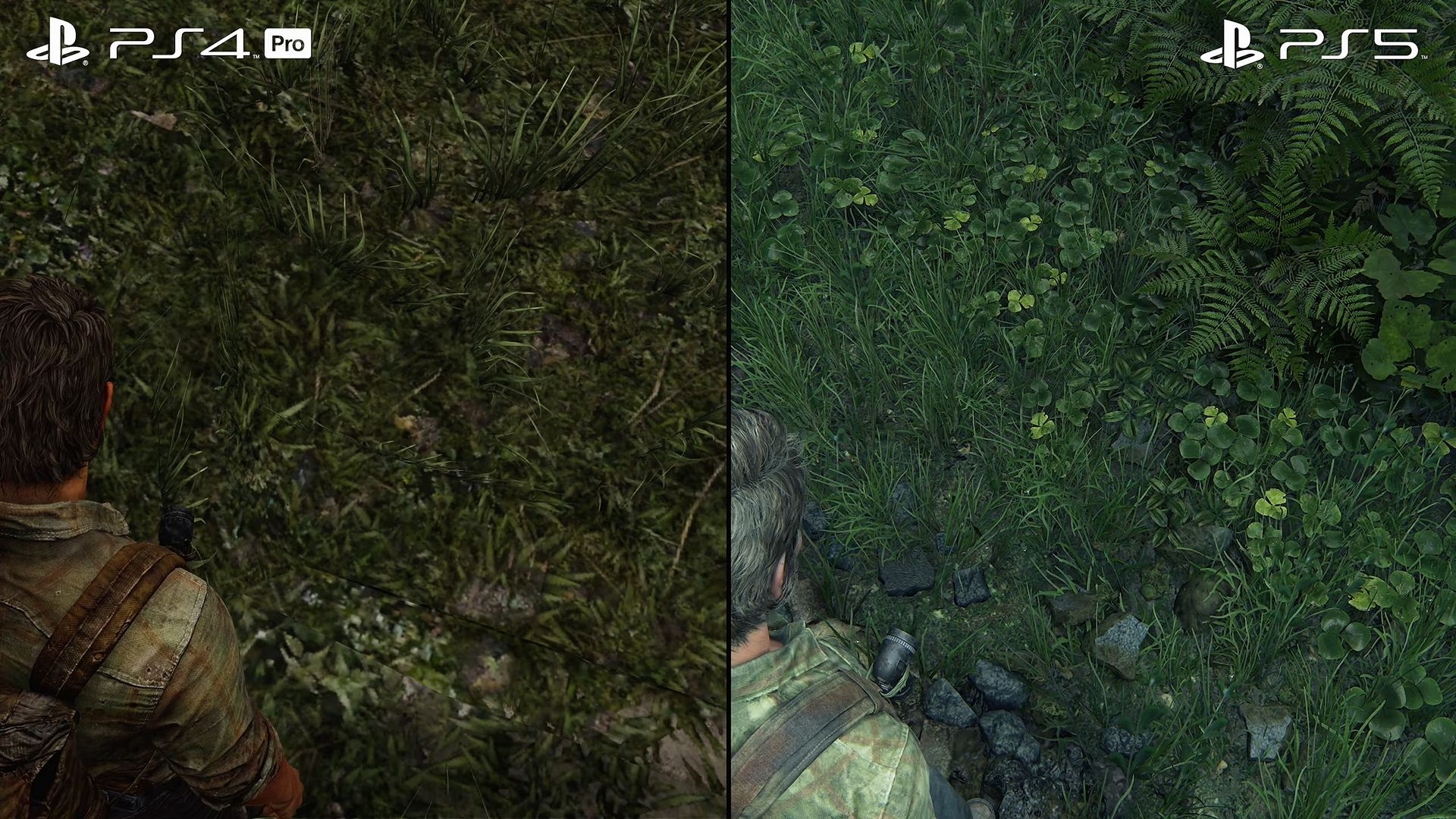 - 원작의 원래 창의적인 비전은 비주얼적으로 매우 어둡고 디스토피아/포스트 아포칼립스와 같은 이미지를 표현하는 것이 아니라, 대지를 되찾고 자연의 아름다움을 강조하는 것이었다. PS3에서는 나뭇잎이 제한적이었지만 PS5의 성능으로 인해 매우 복잡한 셰이더, 모델, 그리고 충실하고 볼륨감 있는 자연을 느낄 수 있을 것이다. 또 눈앞에 있는 물체 외에도 산이나 건물과 같은 더 먼 환경에서도 더 디테일한 내용을 담을 수 있었다.