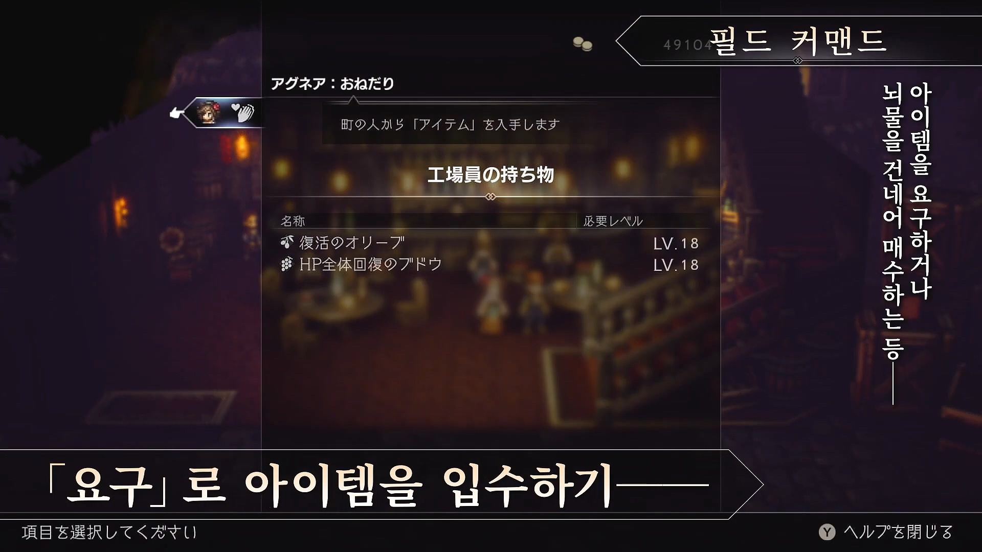 - 밤의 필드 커맨드, 요구 - 마을 사람에게 아이템을 '요구'할 수 있다.