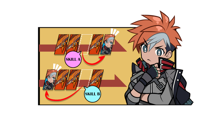 - 2. 리액트 스킬의 발동 - 지원역의 후방 캐릭터들은 스킬마다 설정되어 있는 특정 조건을 만족하면 '리액트 스킬'이 발동, 전방 캐릭터의 액션에 연동해 다양한 추격 액션을 실시한다.