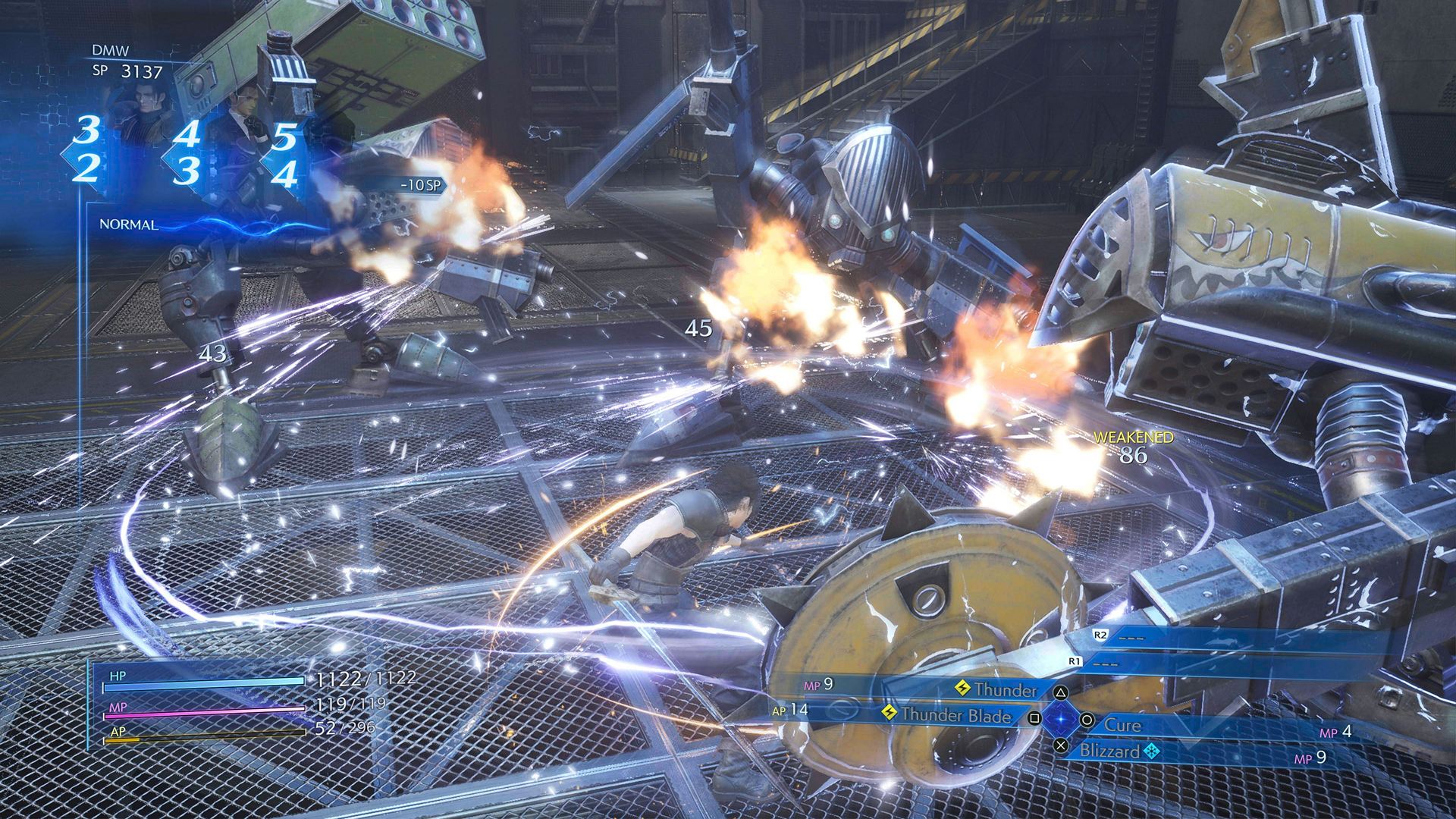 - 배틀 - 이번 작은 직관적인 액션과 FF 시리즈에서 친숙한 마법과 어빌리티를 사용하는 커맨드 시스템을 결합한 배틀 시스템이다. 게다가, 스탯(능력치)이 강화되거나 강력한 '리미트 기술'을 사용할 수 있는 등의 효과를 랜덤으로 가져오는 독자적인 시스템 「D.M.W」이 보다 배틀의 전략성을 높인다.