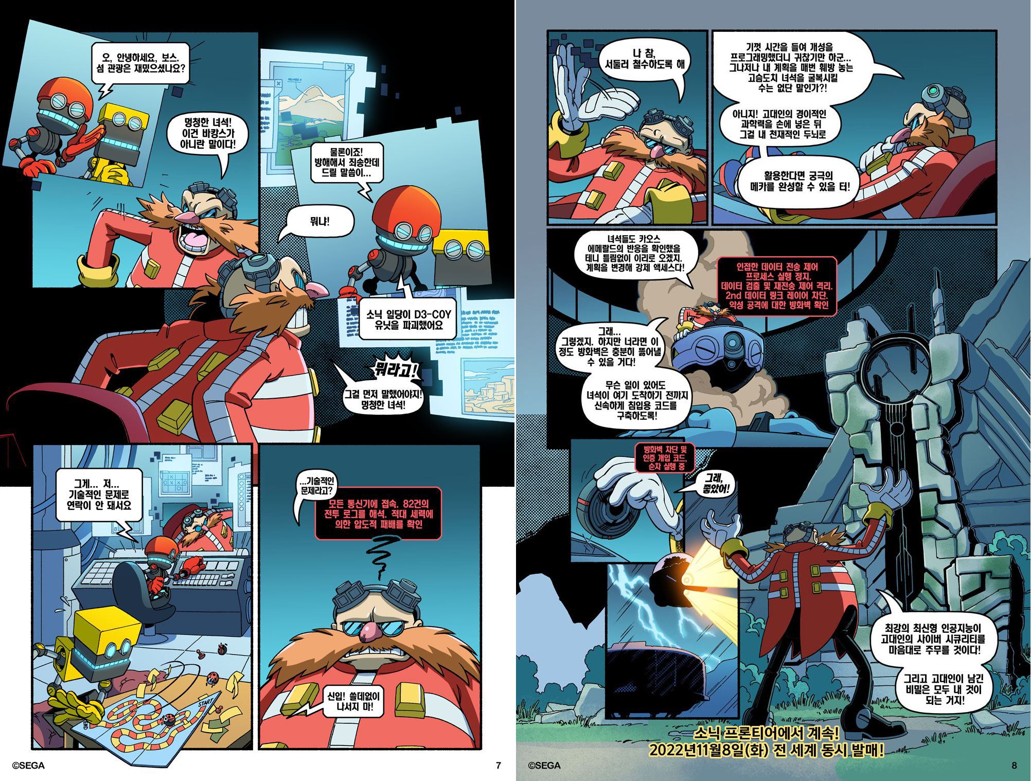 - 공식 사이트에서는 「소닉 프론티어」의 메인 스토리로 이어지는 전날 담을 그린 디지털 만화가 공개 중. 소닉과 동료인 에이미나 테일스, 숙적인 Dr. 에그맨의 행동을 전 2화(총 8페이지)에 걸쳐 볼 수 있다. 「소닉 프론티어」로 이어지는 이야기를 게임 발매 전에 꼭 읽어 두자!
