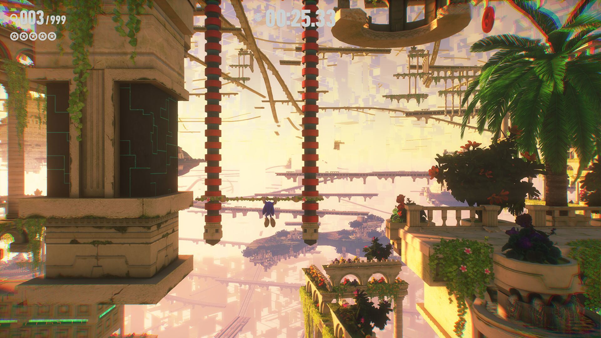 - 이번 작은 월드 맵이 광활한 오픈월드 게임의 필드처럼 진화, 각 맵에 설치된 기믹과 함께 코스라는 개념에 얽매이지 않고 전방위의 고속 게임 플레이를 즐길 수 있다. 월드 맵(오픈 존)에 준비된 요소는 콤보 공격/패링/필살기로 적과 싸우는 「배틀」부터, 「수수께끼 퍼즐」, 「사이드 퀘스트」, 「전뇌 공간」 등 다양하며 유저 스타일에 따라 자유로운 순서로 플레이하는 것이 가능하다고 한다.