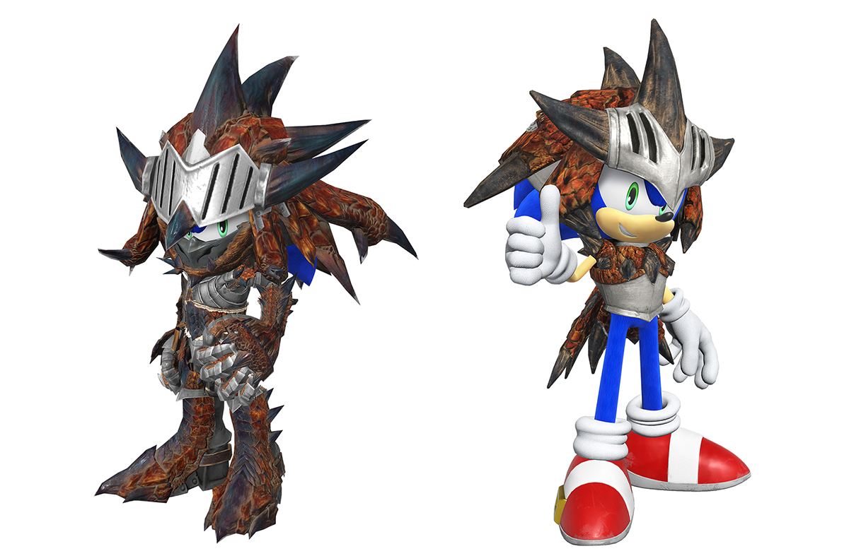 - 「소닉 프론티어」의 무료 다운로드 컨텐츠(DLC)에 「몬스터 헌터」시리즈와의 콜라보레이션 팩이 등장. 콜라보 팩을 다운로드하면 「리오레우스」의 특별한 장비와 미니 게임이 플레이 가능하게 되는 「고기 구이 세트」를 획득할 수 있다.