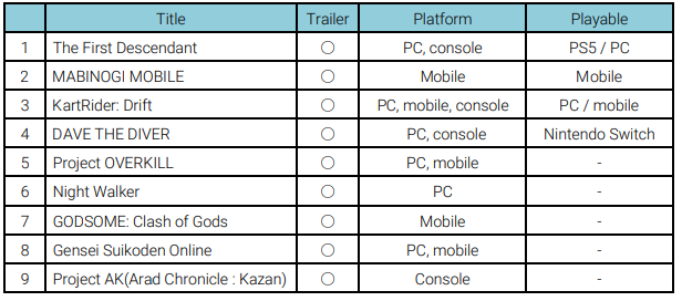 넥슨 지스타 2022 부스에서 시연/영상 출품하는 9개의 타이틀