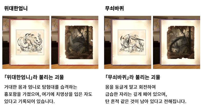 - 보물 상자 안에 숨어 있어서 움직임이 둔하다. - 튼튼한 보물 상자 안에 숨어 있는 모으령은 높은 방어력을 가졌지만, 무거운 보물 상자 때문에 움직임이 둔하고, 이동하는 것이 서투릅니다. 이 때문에 골동품으로 착각한 사람이 그대로 들고 가 버리거나, 골동품점에 팔리는 경우도 드물지 않다고 합니다.