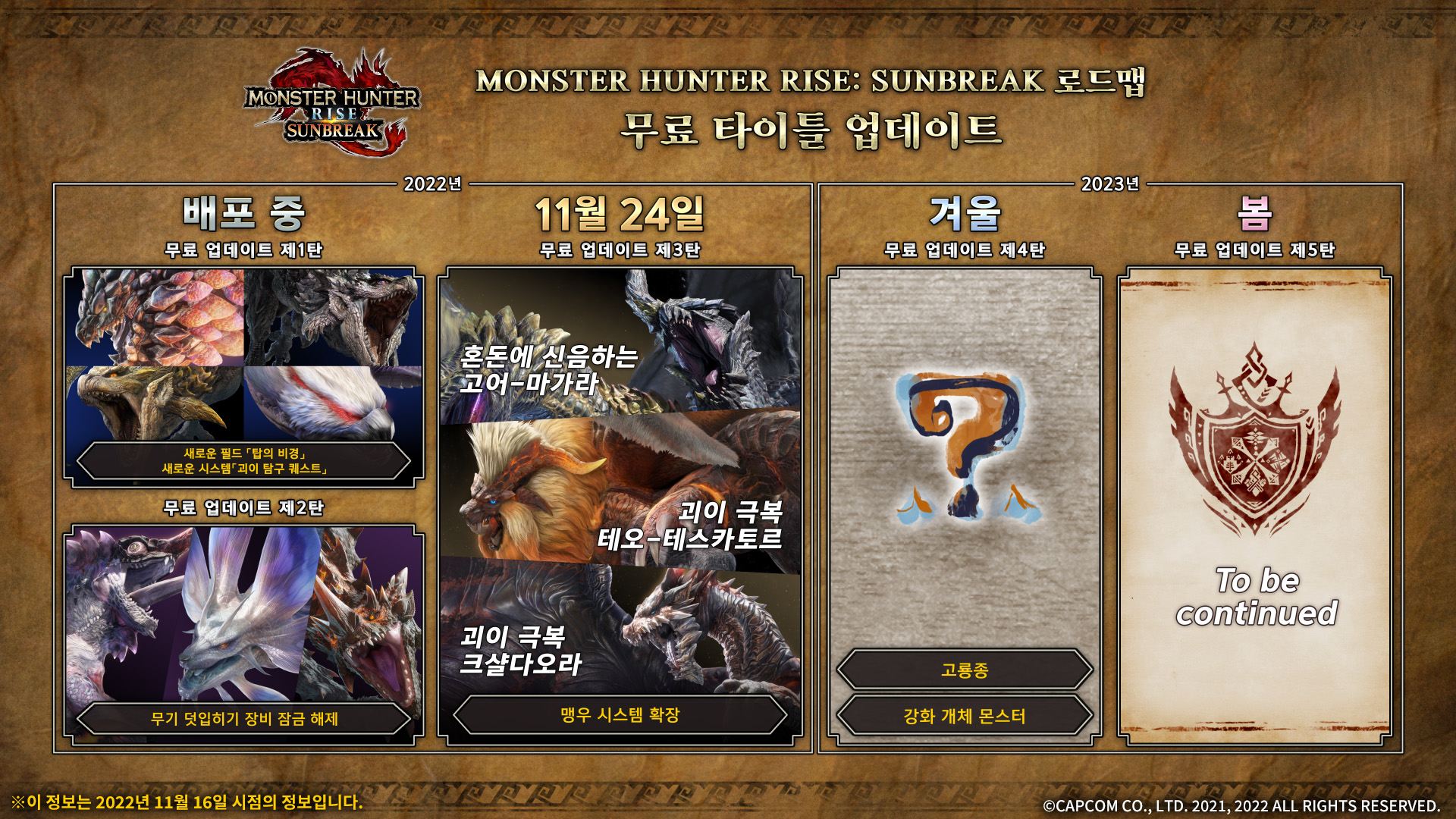 | MH RISE: SUNBREAK 무료 타이틀 업데이트 로드맵 | |