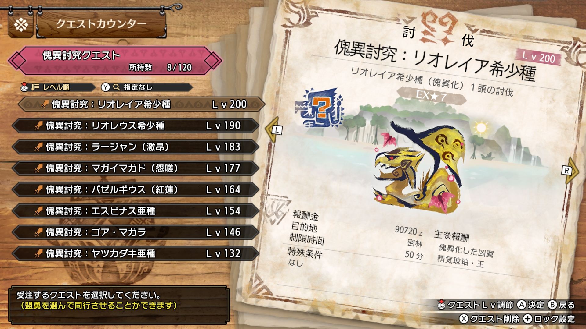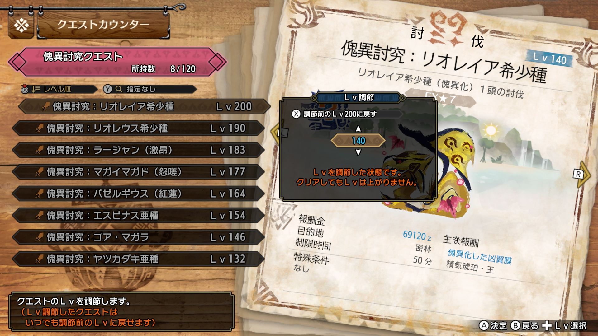 - 괴이연구 레벨이 181 이상되면 괴이 퀘스트 EX★7이 개방되어 「에스피나스 아종」이나 「원망서린 마가이마가도」 등의 '괴이화 몬스터'에 도전할 수 있게 된다. 매우 고난도 퀘스트이므로 실력에 자신 있는 헌터는 도전하자!