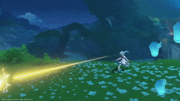 - 원소 전투 스킬, 우화 바람이 전하는 노래 - 주변 적들에게 피해를 주고 공중으로 날아올라 한동안 공중에 떠 있는 「부유 상태」가 된다.