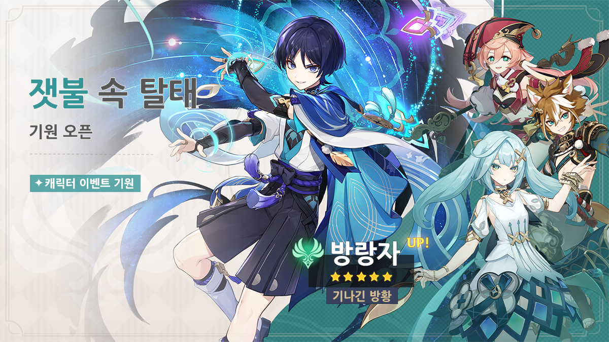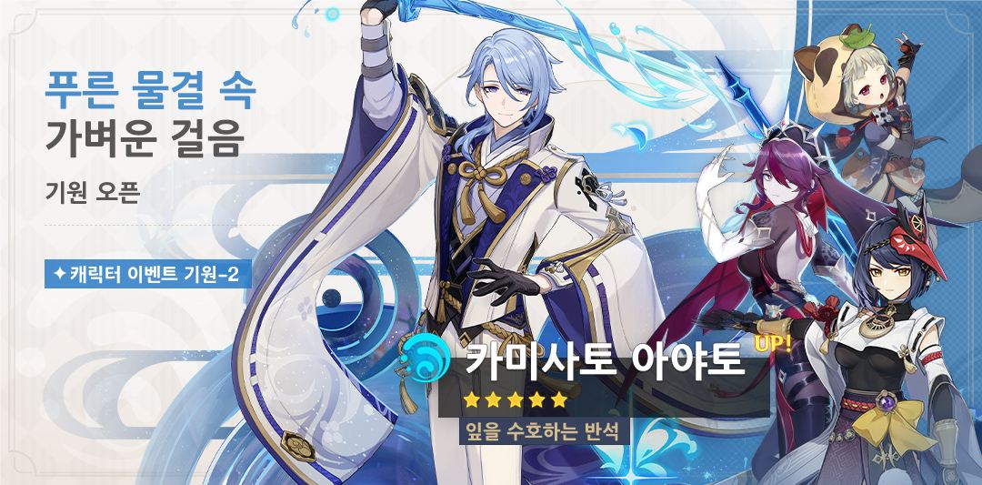 | 제2회 푸른 물결 속 가벼운 걸음 | ★5 카미사토 아야토 획득 확률 UP |