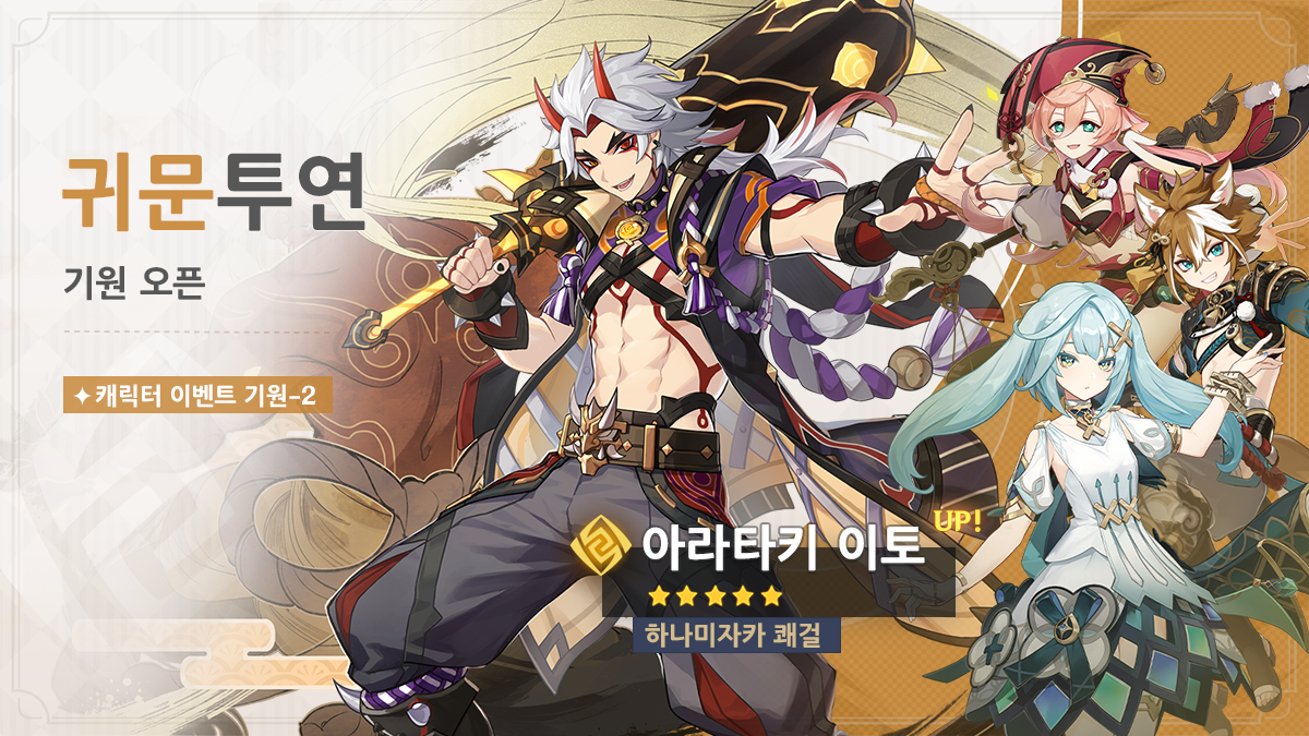| 제1회 귀문투연 | ★5 아라타키 이토 ★4 파루잔 획득 확률 UP |