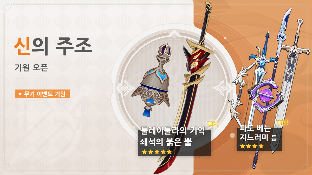 | 신규 무기 | ★5 법구, 툴레이툴라의 기억 |