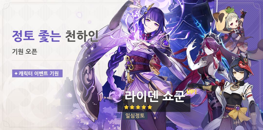 | 제2회 정토 좇는 천하인 | ★5 라이덴 쇼군 획득 확률 UP |