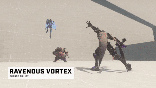 - 어빌리티, 탐식의 소용돌이(Ravenous Vortex) - 옴닉/네메시스 형태에 관계없이 사용할 수 있는 기술로, 땅에 닿으면 원형의 필드를 전개시키는 탄을 발사한다. 이 탄은 벽이나, 적, 천장에 튕기기 때문에 지면에 닿아야 효과가 발동되며 넓은 전개 범위 내의 적에게 피해를 주고, 슬로우 효과와 함께 공중의 적을 땅으로 끌어들인다. 이 능력을 사용해 적 팀이 자신이나 아군에게 돌진하는 것을 막을 수 있고 이 기술에 걸리면 윈스턴 조차도 매우 약한 점프를 하게 될 것.