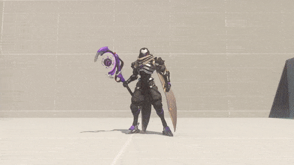 - 「응징」은 전방을 향해 주먹으로 때리고 주먹에서는 관통 능력이 있는 단거리의 충격파를 발사한다. 이 공격은 라인하르트/디바/윈스턴의 방벽을 관통한다.