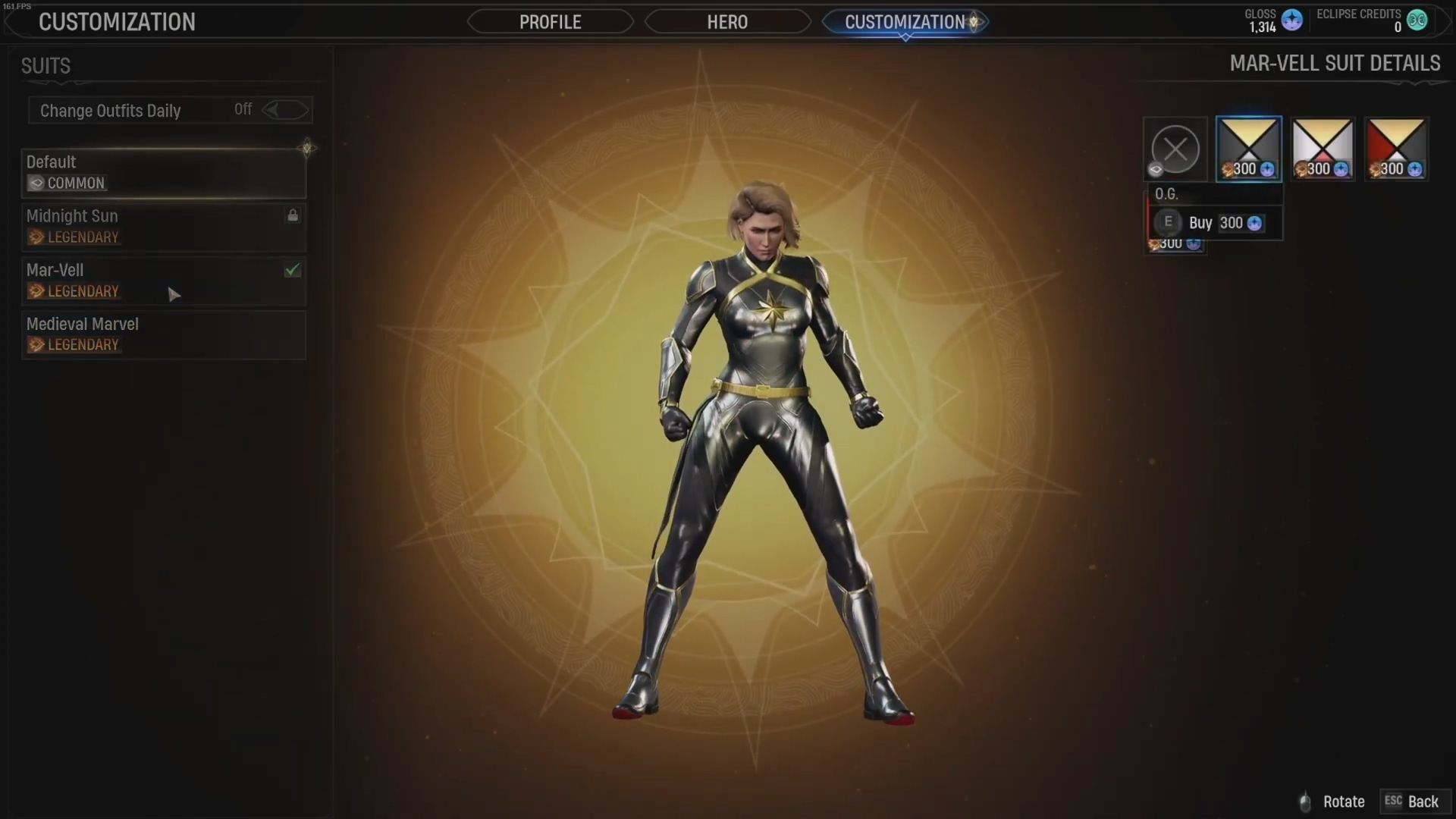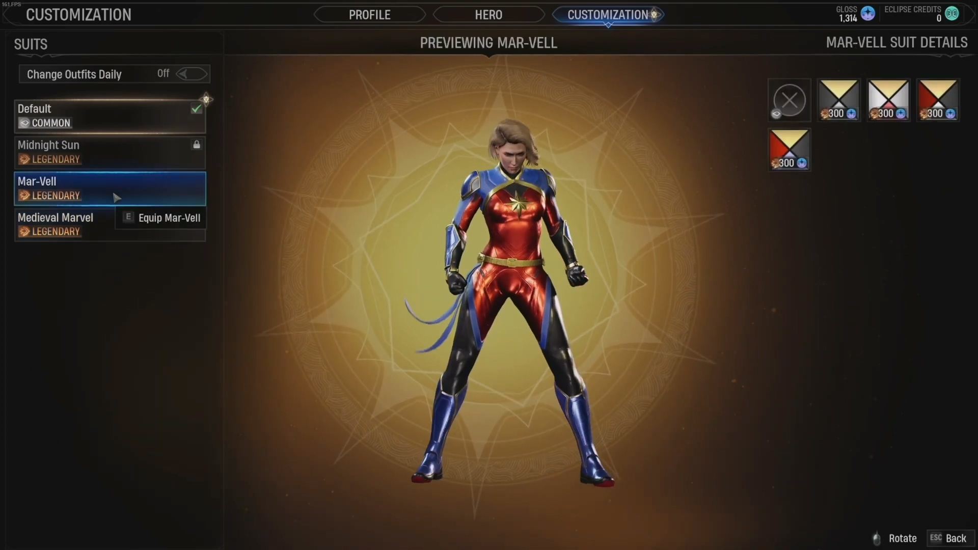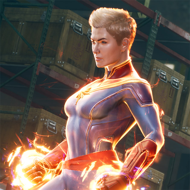 - 캡틴 마블 (캐롤 댄버스, 특기: 공격/방어) - 공군 파일럿이자 보안요원인 캐롤 댄버스는 크리 장치로 인해 그녀의 반쪽짜리 외계인 DNA가 활성화되어 인간/크리 혼혈로서의 능력이 깨어나게 된다. 캡틴 마블은 최전방에서 매우 효과적인 캐릭터로서 도발과 방어를 생성하고 한 번에 여러 명을 공격할 수 있으며, 피해량을 2배로 늘리는 공격 상태를 발동한다.