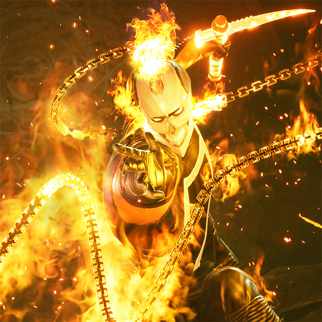 - 고스트 라이더 (로비 레예스, 특기: 공격) - 로비 레예스는 LA 동부의 활기차지만 빈곤한 동네에서 자라났다. 로비는 또 다른 지옥의 자아에게 몸을 내주고 복수의 화신이 되면 고스트 라이더로 변신하여 악행을 일삼는 이들에게 정의의 철퇴를 내리는 데 집착한다. 고스트 라이더는 평균 이상의 피해를 주지만 그 대가로 자신이나 아군을 희생해야 한다. 또 처치한 적의 영혼을 흡수해서 체력 회복 가능.