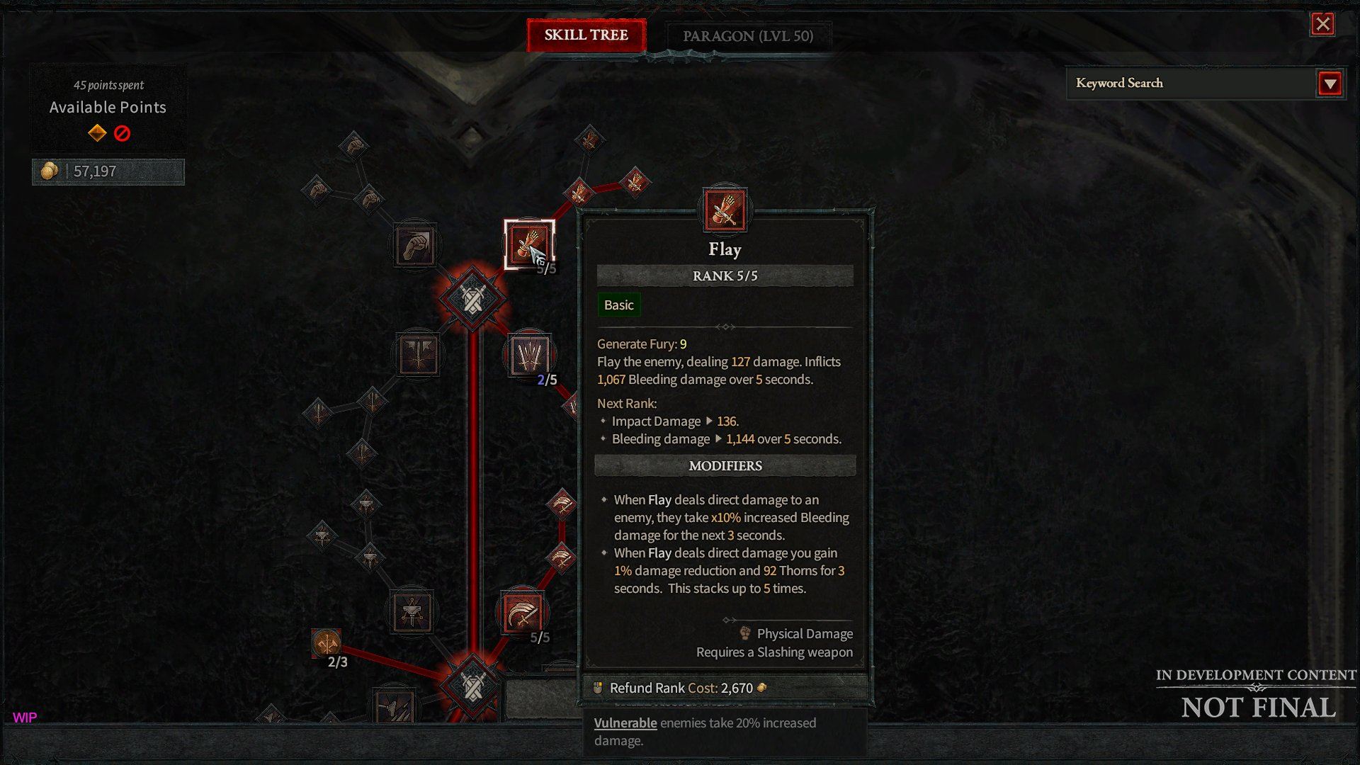 - 스킬 트리에는 스킬의 특성을 바꾸는 노드도 존재해 스킬을 커스터마이징 할 수도 있다. 예를 들어 원소술사의 얼음 조각을 발사하는 스킬 「Frost Bolt」를 습득하면 다른 2차 스킬 노드가 개방되어 냉기 및 얼음 상태에서 히트하면 마나가 늘어나는 「Glinting Frost Bolt」, 혹은 얼음 상태에서 취약 상태를 부여해 더욱 피해를 줄 수 있는 「Flickering Frost Bolt」 중 하나를 추가적으로 배울 수 있다.