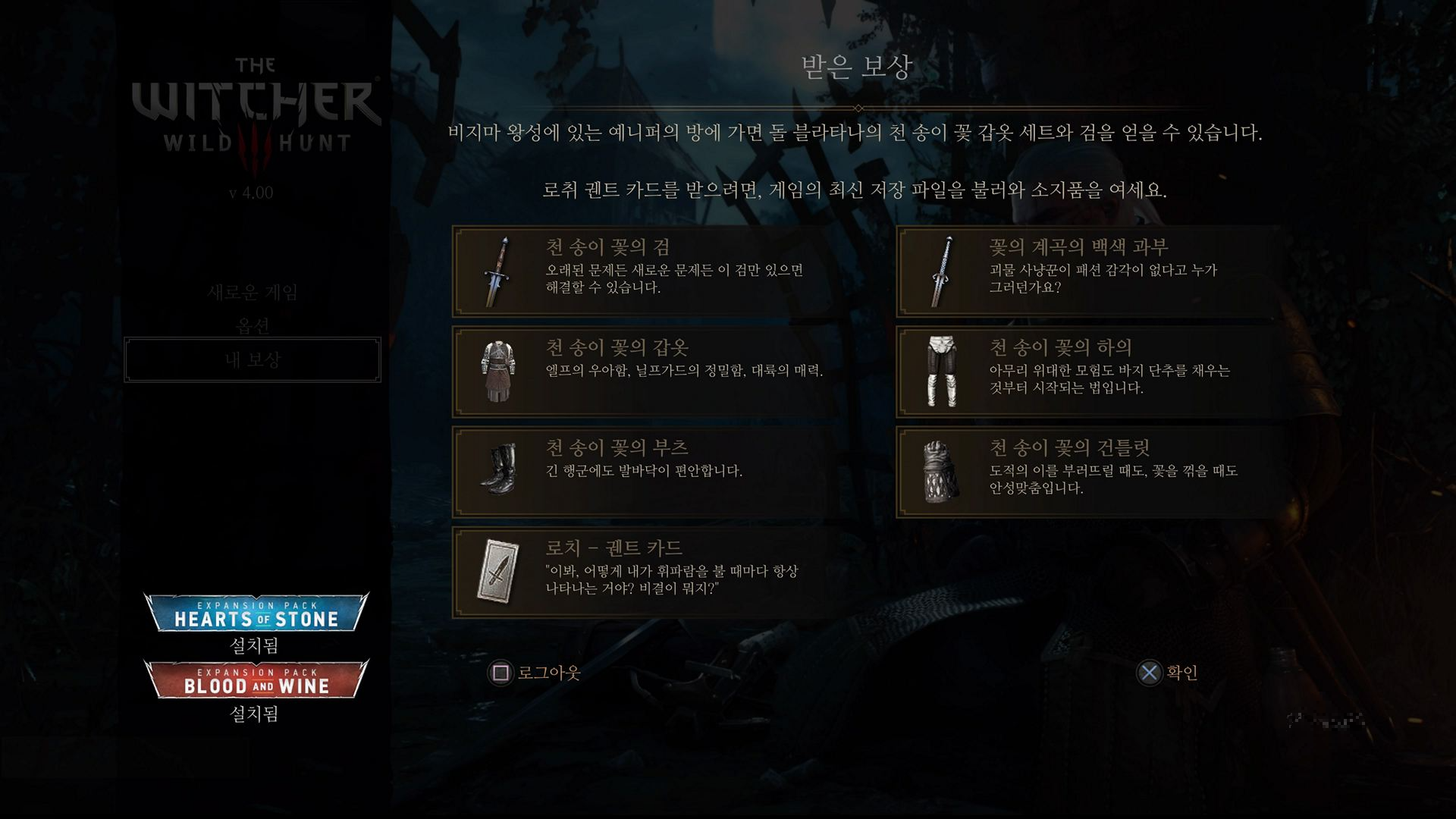 더 위쳐 3: 와일드 헌트의 내 보상에 등록하면, 다음 보상을 받을 수 있습니다.
