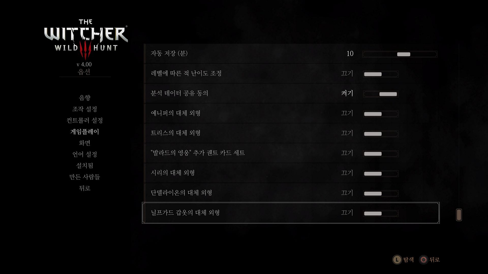 밸렌으로 이동하면 넷플릭스 '위쳐' 관련 사이드 퀘스트와 보상 갑옷을 받을 수 있고, 추가된 '단델라이온', '닐프가드 갑옷 세트' 대체 외형은 옵션 -> 게임 플레이에서 활성 가능