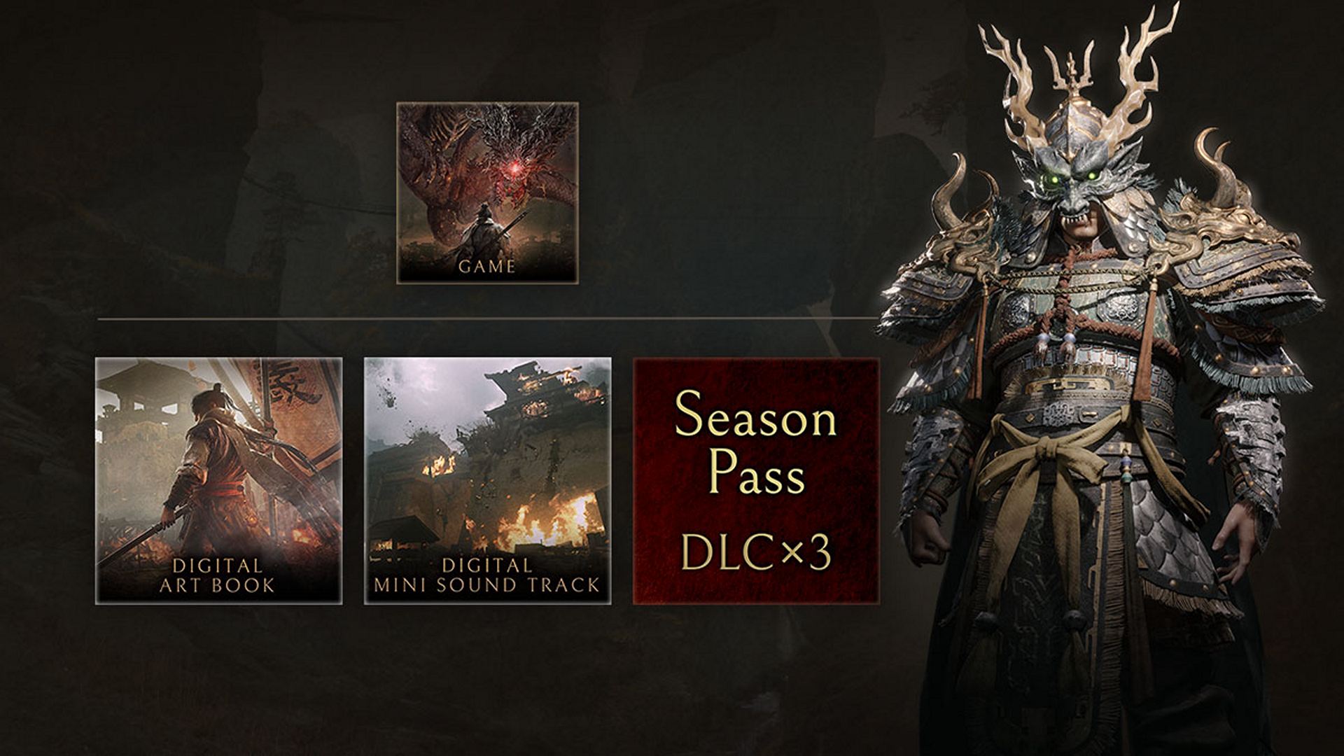- 게임을 예약 구매하면 백호의 갑옷, 주작의 갑옷을 특전으로 얻을 수 있고, 디지털 디럭스를 구매하면 '디지털 아트북 & 미니 사운드 트랙', 인왕 등 팀닌자의 전작들과 마찬가지로 스토리 DLC 1-3탄이 포함되어 있는 시즌패스, 그리고 시즌 패스 특전으로 청룡의 갑옷을 얻을 수 있다. 시즌 패스와 DLC 1~3탄은 각각 단품으로도 구매 가능.