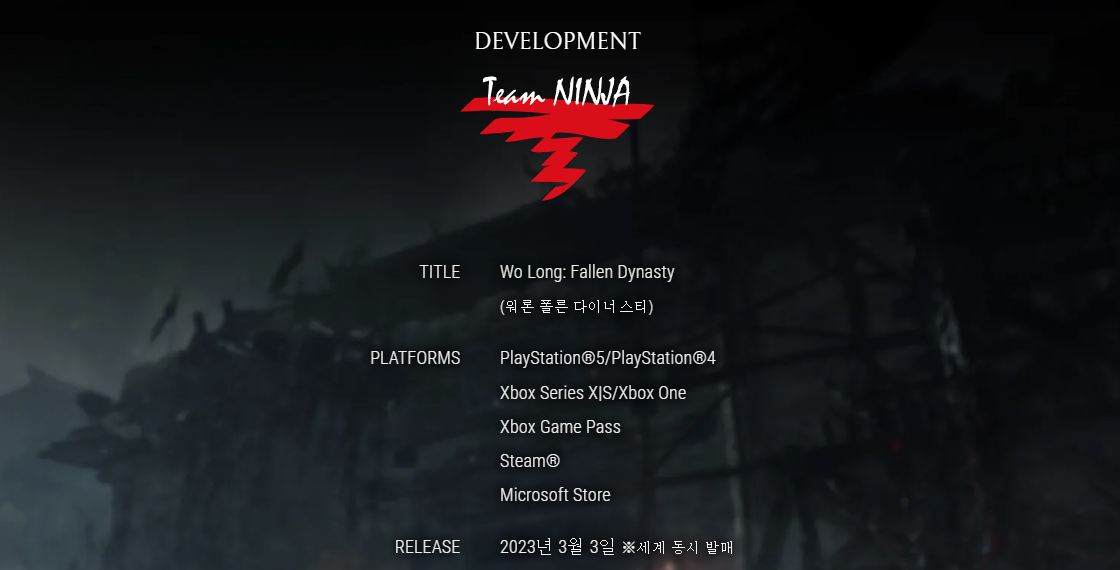 코에이 테크모의 팀 닌자가 개발하는 다크 판타지 X 삼국지 액션 RPG < 와룡(Wo Long: Fallen Dynasty) >의 최신 영상이 공개되었고, 각 플랫폼(PS,Xbox, 스팀)에서 예약 판매도 시작했습니다. 이번 영상에서는 삼국지에서 친숙한 무장인 '관우', '장비'가 등장, 여포의 전투 장면과 새로운 적들, 전투 스테이지도 볼 수 있습니다. 🙂