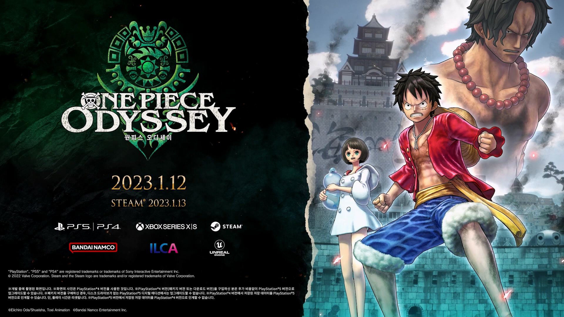 반다이 남코가 배급, ILCA가 개발하는 RPG 신작 < 원피스 오디세이 >의 신규 트레일러와 새로운 정보가 공개되었습니다. 또한 2023년 1월 10일에 무료 체험판도 배포될 예정이며 체험판을 클리어 후 세이브 데이터를 연동하면 특전(골든젤리x3)도 준다고 합니다.