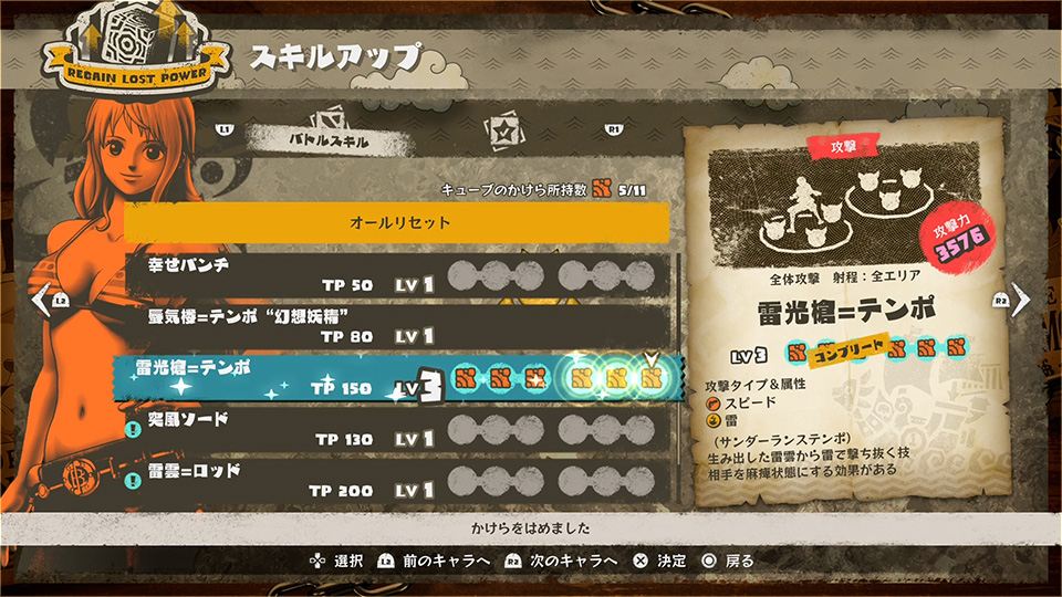 - 견문색의 패기 - 루피의 필드 액션인 견문색의 패기를 사용하면 필드에 있는 높은 경험치의 적을 발견 가능. 이들을 잘 찾아내 보다 많은 경험치를 획득하자.