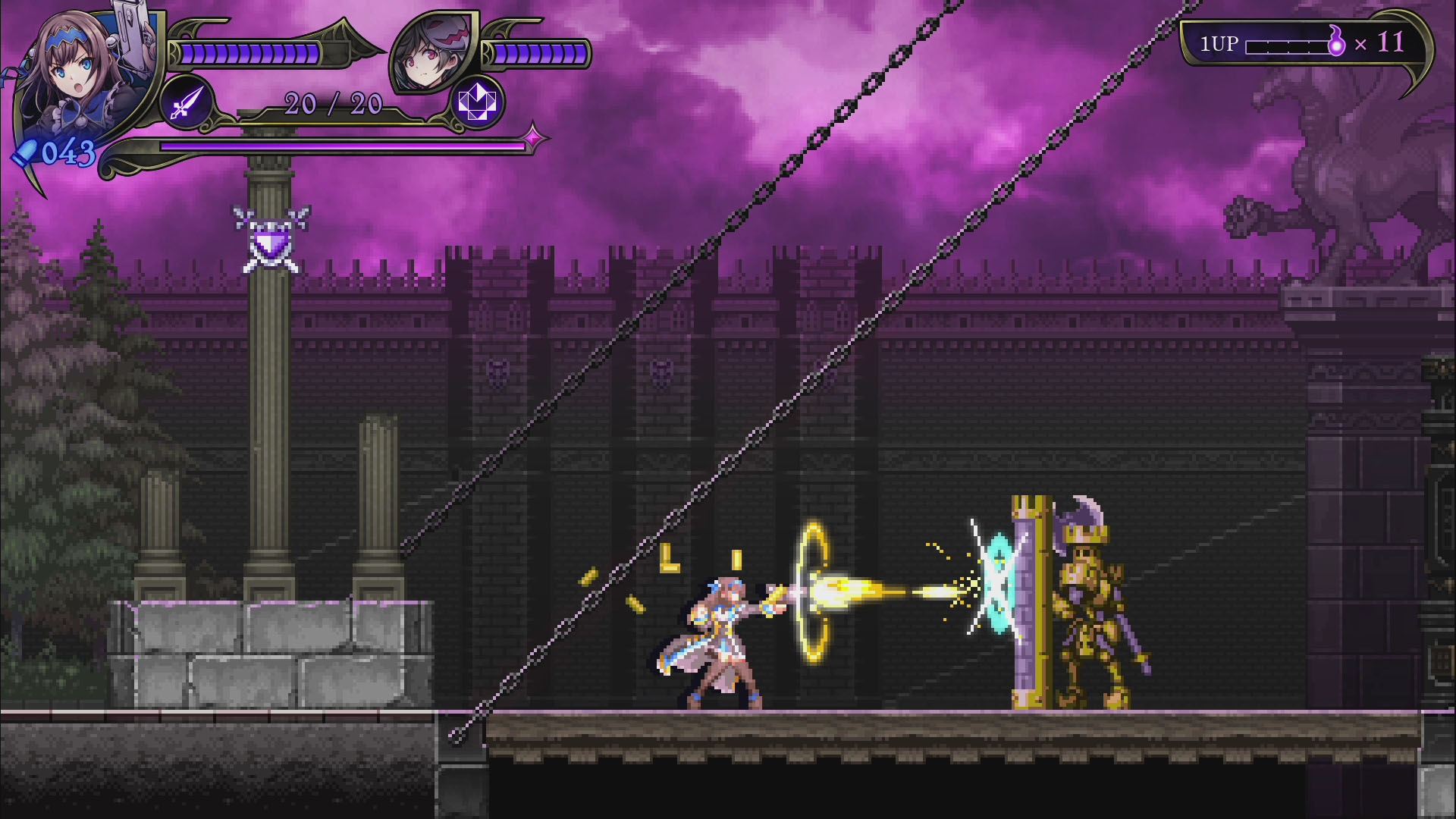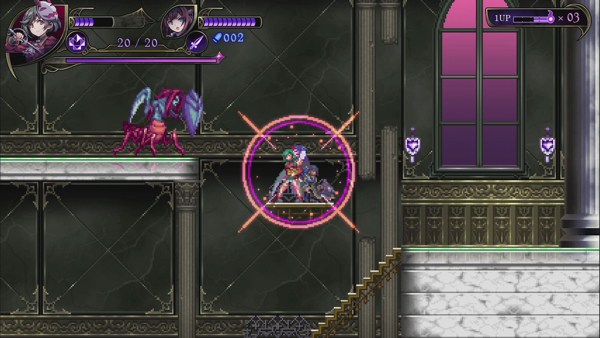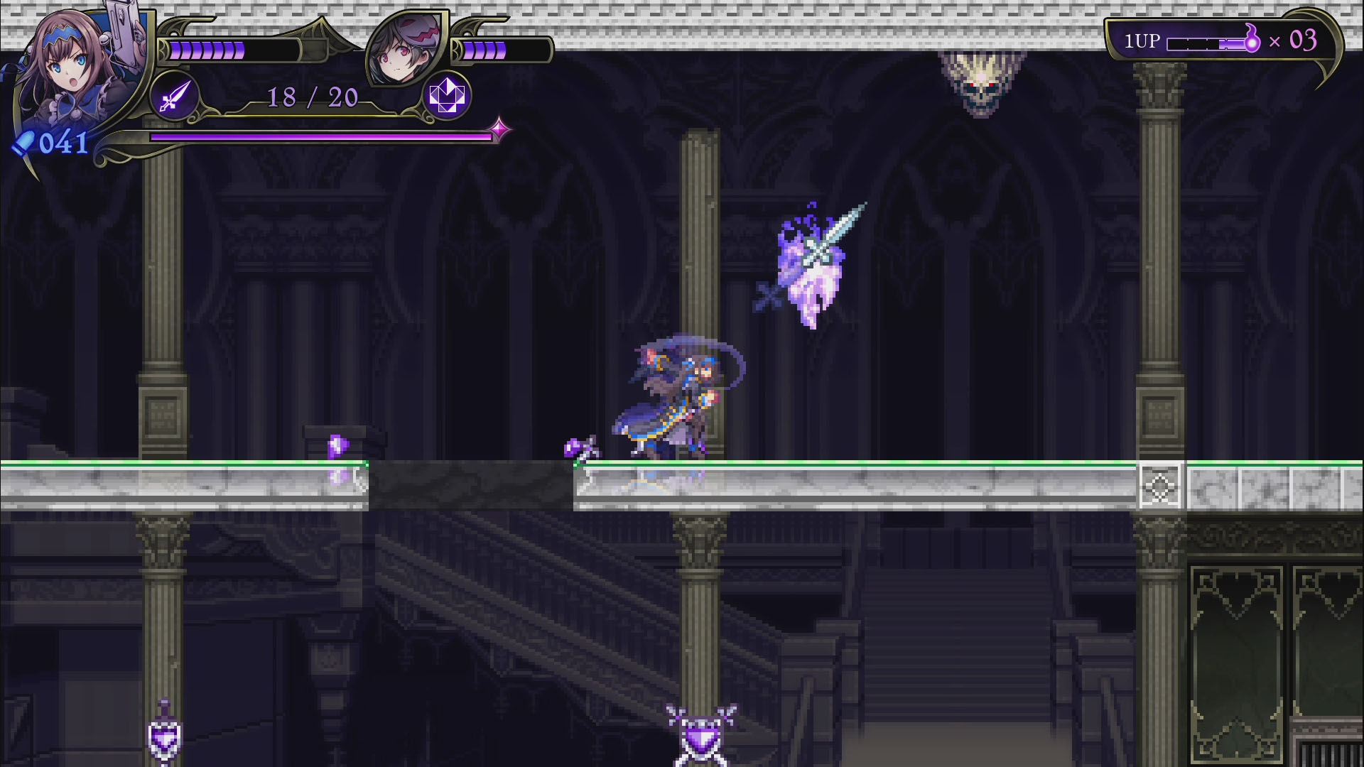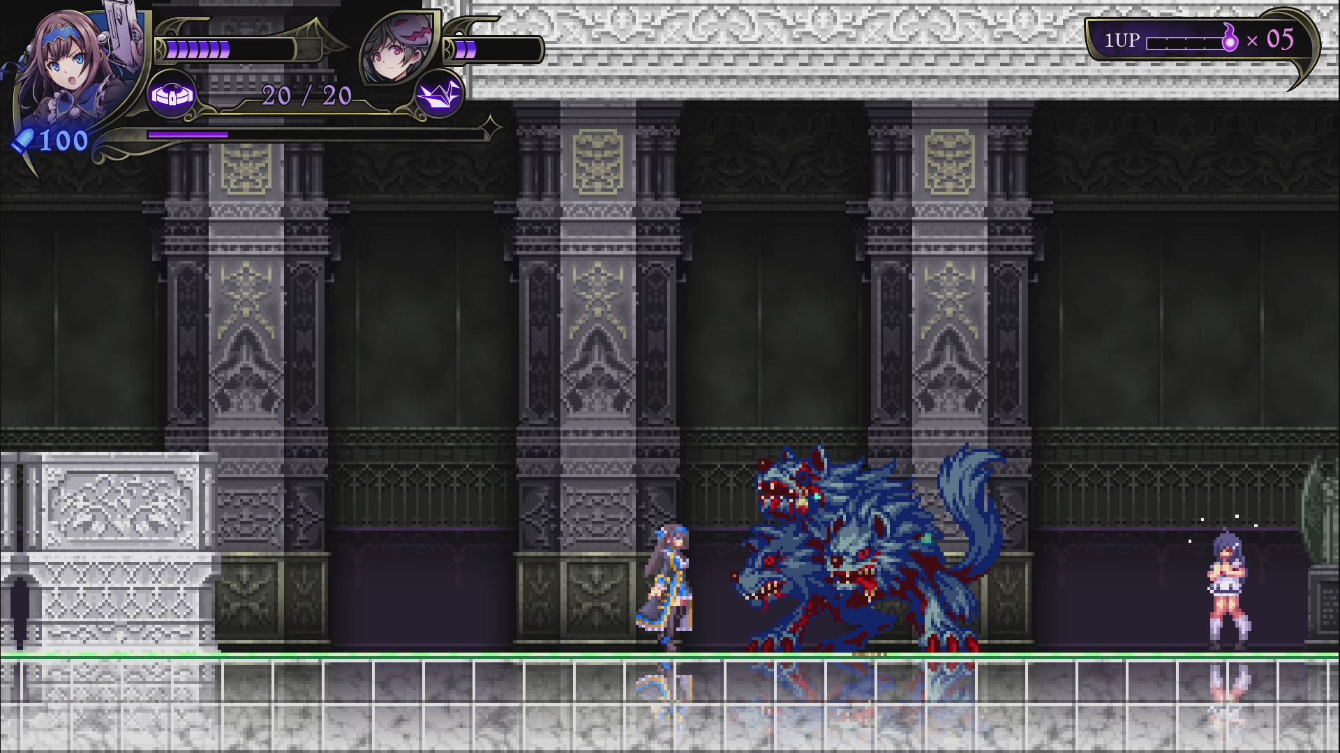 - 록맨, 건볼트 등의 개발사 인티 크리에이츠의 신작으로, 악마의 성이 된 학교를 원래대로 되돌리기 위해 '악마헌터'인 2명의 자매가 싸우는 2D 횡스크롤 액션 게임. 플레이어는 성능이 다른 두 캐릭터를 사용하면서 보스가 기다리고 있는 스테이지 끝을 목표로 진행한다. 보스 악마를 쓰러뜨리면 새로운 무기를 획득하고, 다음 스테이지에서는 새로운 루트를 탐험할 수 있다. 2인 동시 플레이에도 대응하며 두 캐릭터를 동시에 움직이는 연계 액션, 플레이어가 자유롭게 난이도를 선택하는 '스타일 시스템', 풀 보이스 음성 지원, 주회차 플레이에서 변화하는 게임 플레이 등 인티 크리에이츠 작품 특유의 게임성과 고딕 호러 취향을 즐길 수 있는 작품.