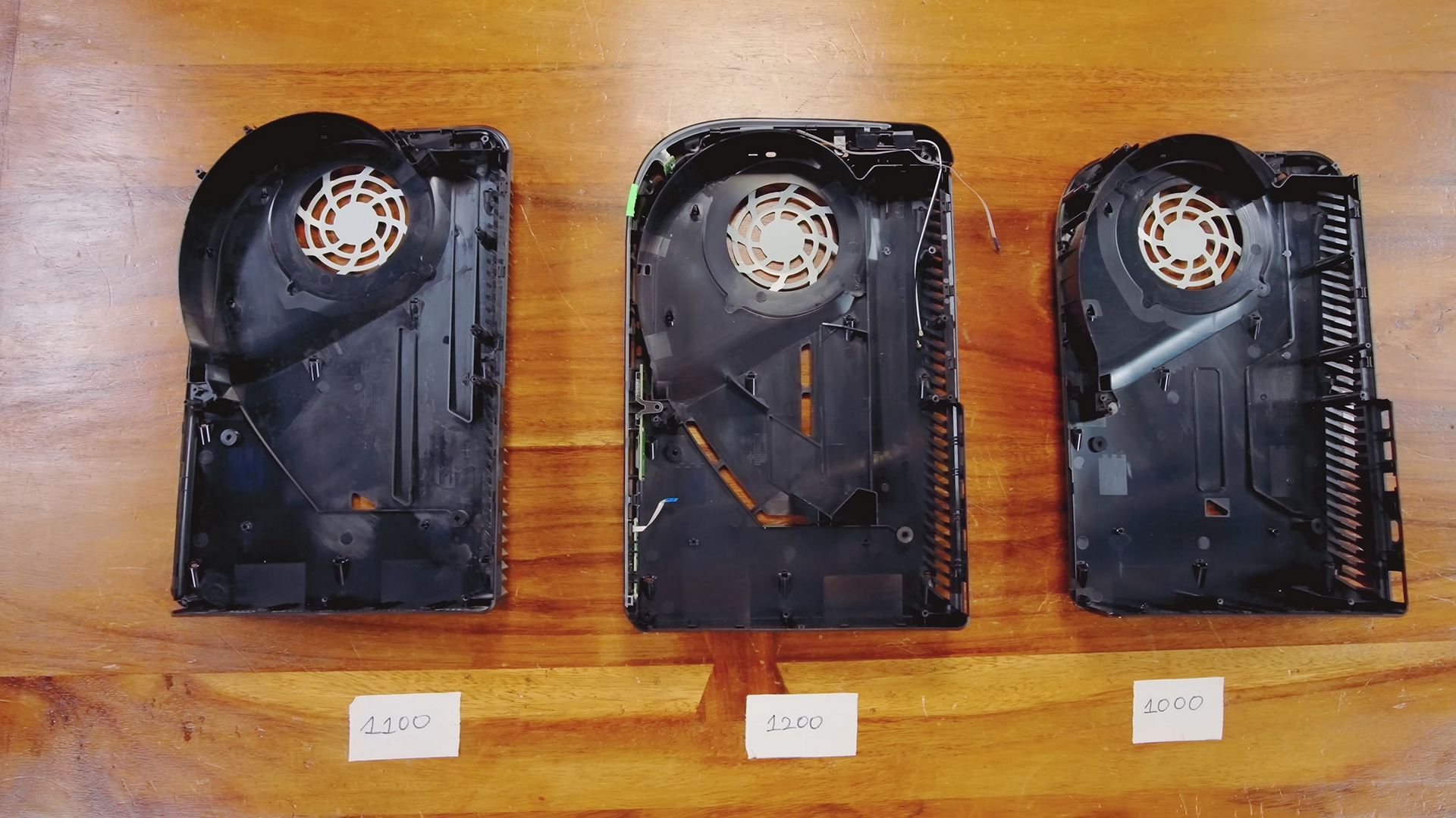 아래의 영상에 따르면, 이번 PS5 CFI-1200 신형 모델은 블루레이 디스크를 탑재한 일반 모델이 3.9kg, 디스크 드라이브가 없는 디지털 에디션은 3.5kg의 무게로, 내부 발열을 억제하는 히트 싱크의 소형화 등으로 인해 이전 모델(CFI-1100) 보다 약 2~300g 가벼워졌다고 합니다.